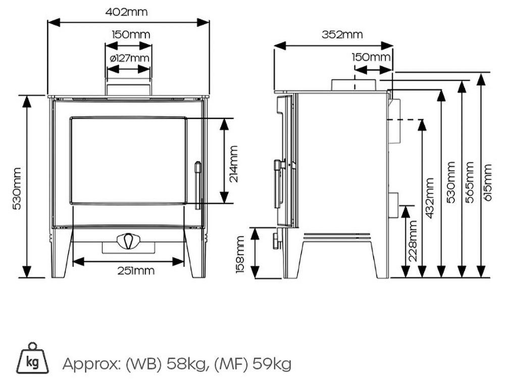 | Futura 4 Multi-fuel | 402mm | 530mm | 352mm | A |